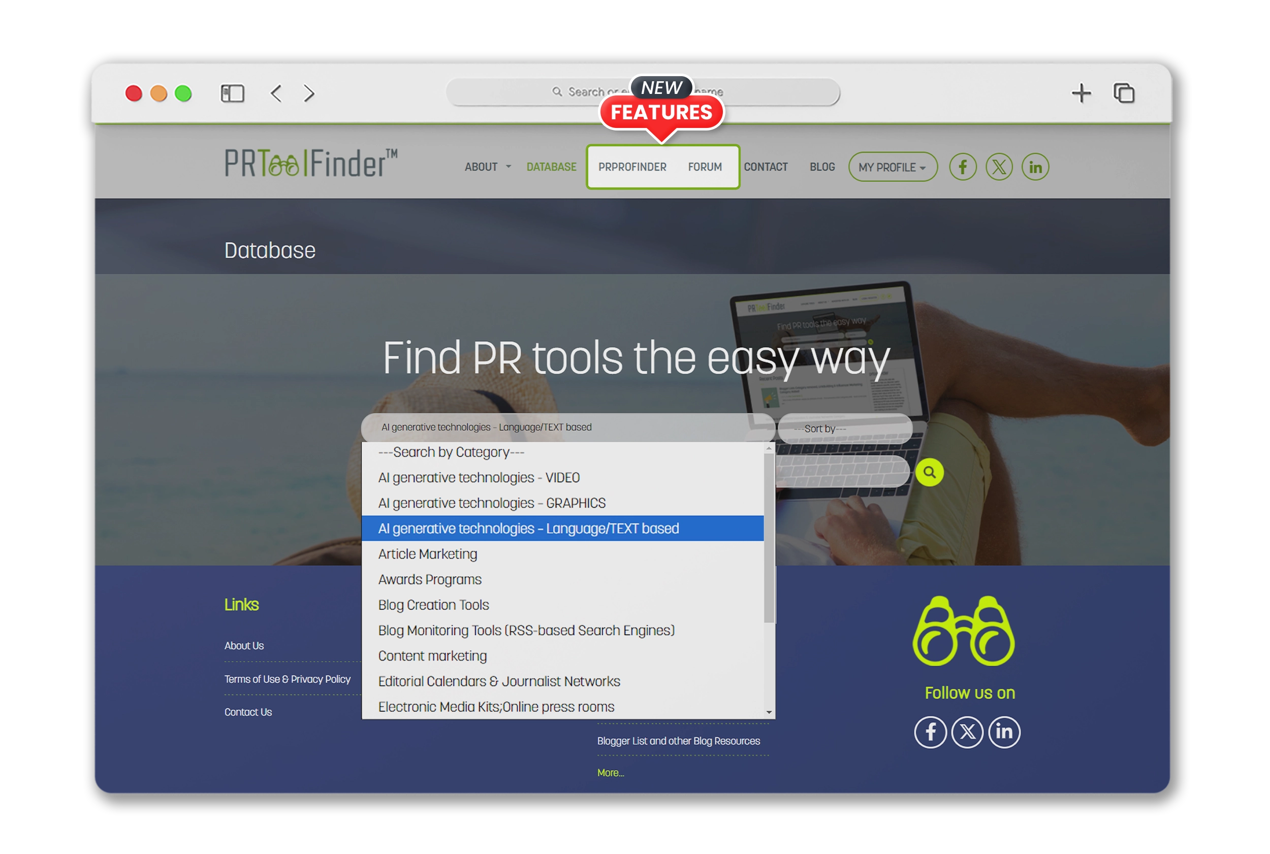 New tools emerge, while existing ones are updated or replaced. Keeping up with these changes and evaluating the effectiveness of different tools can be time-consuming. PRToolFinder updates the database ongoing, blogs about changes and offers the only PR-specific, searchable database of tools categorized the way PR pros search for their PRTech.